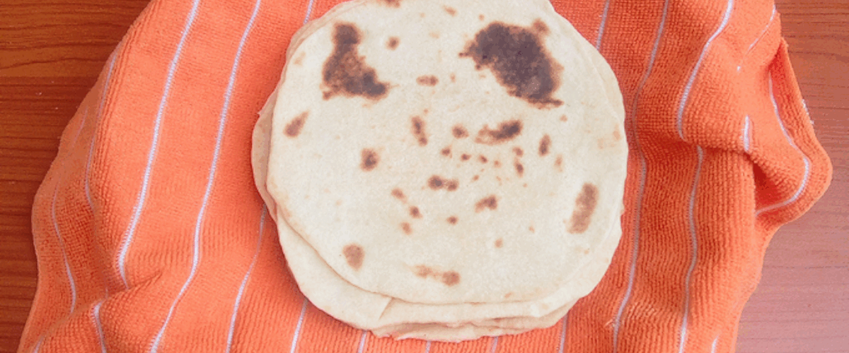 Take out the bread and wrap in a clean kitchen napkin, the steam will help soften the outer crust and make it pliable. Repeat process till all has been cooked.