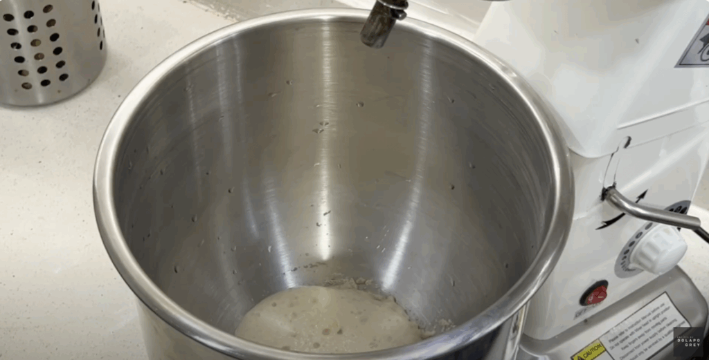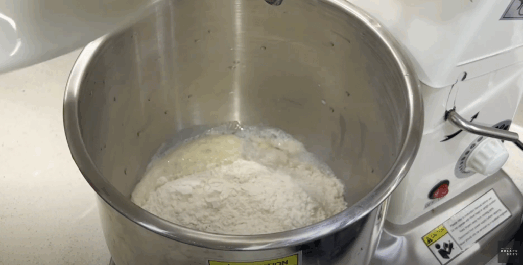 - Pour the lukewarm water into the bowl of your stand mixer. Add the yeast and 1 teaspoon of sugar, and mix to combine. Cover and let it loom for 5 to 10 minutes
