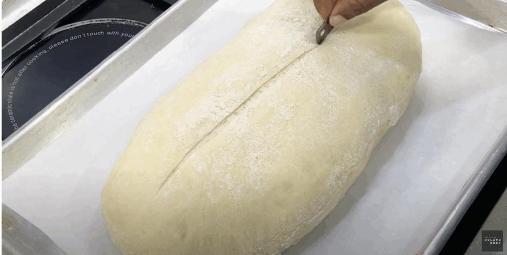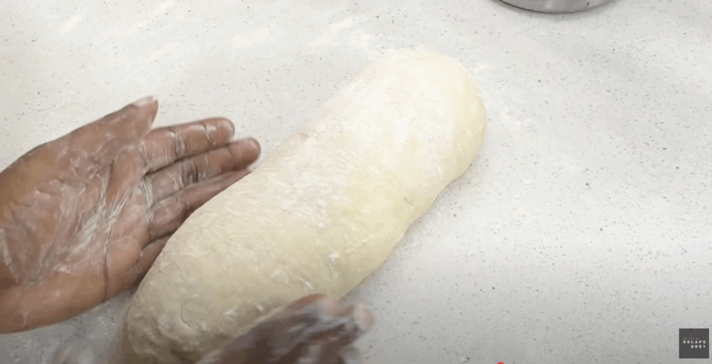 - After the dough is risen, deflate and shape into a log Transfer unto a lined tray. Cover with a clean kitchen towel or plastic wrap, and let it rise for 1 hour