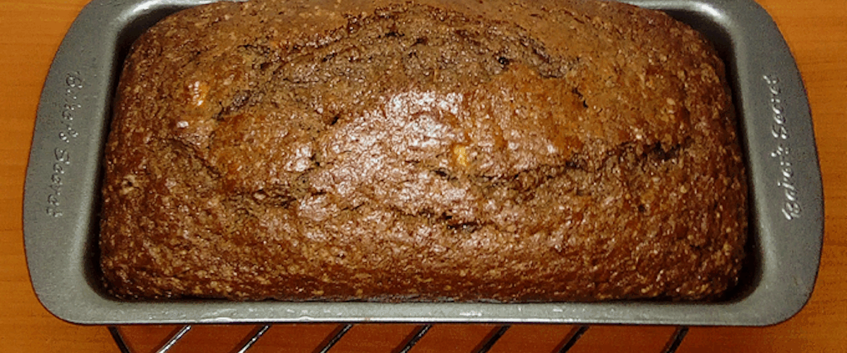 Pour batter into the loaf pan and bake in the preheated oven for 45 to 50 minutes or until a skewer inserted comes out clean.