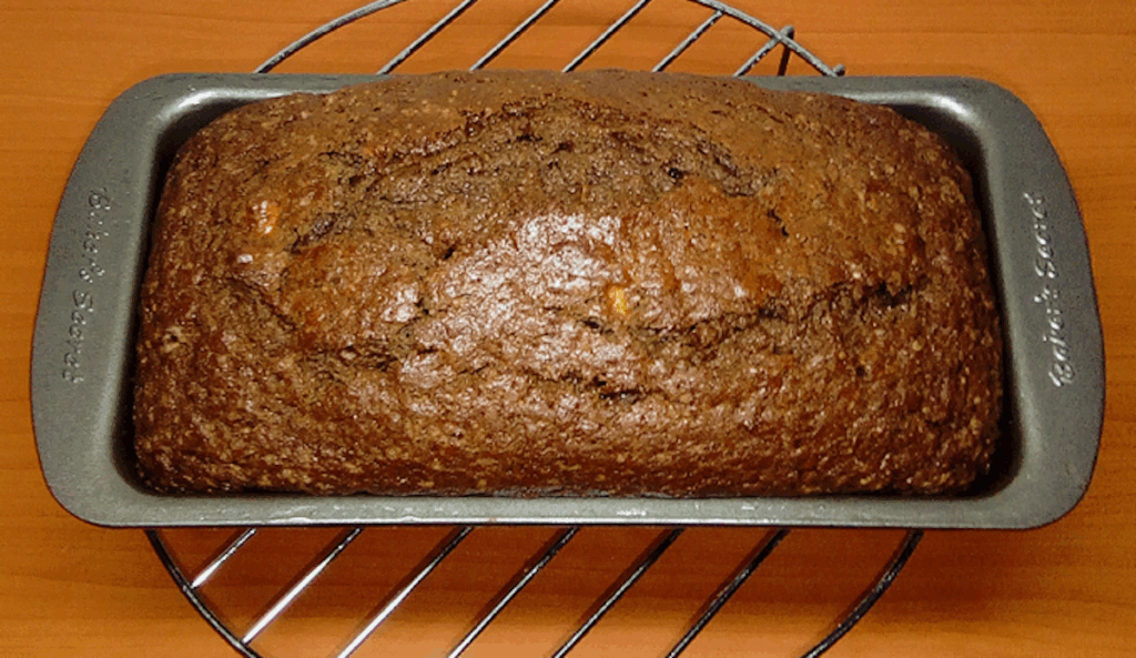 Pour batter into the loaf pan and bake in the preheated oven for 45 to 50 minutes or until a skewer inserted comes out clean.
