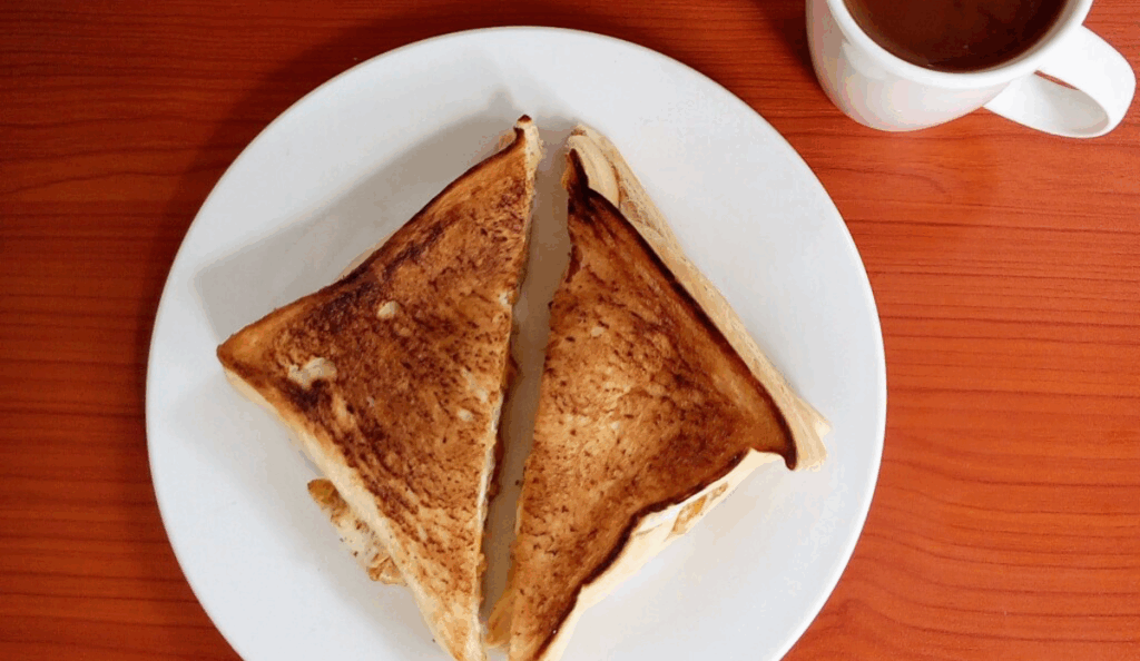 Heat a frying pan over medium heat with butter. Press the sandwich on until the bread is golden brown on both sides. Repeat for the rest.