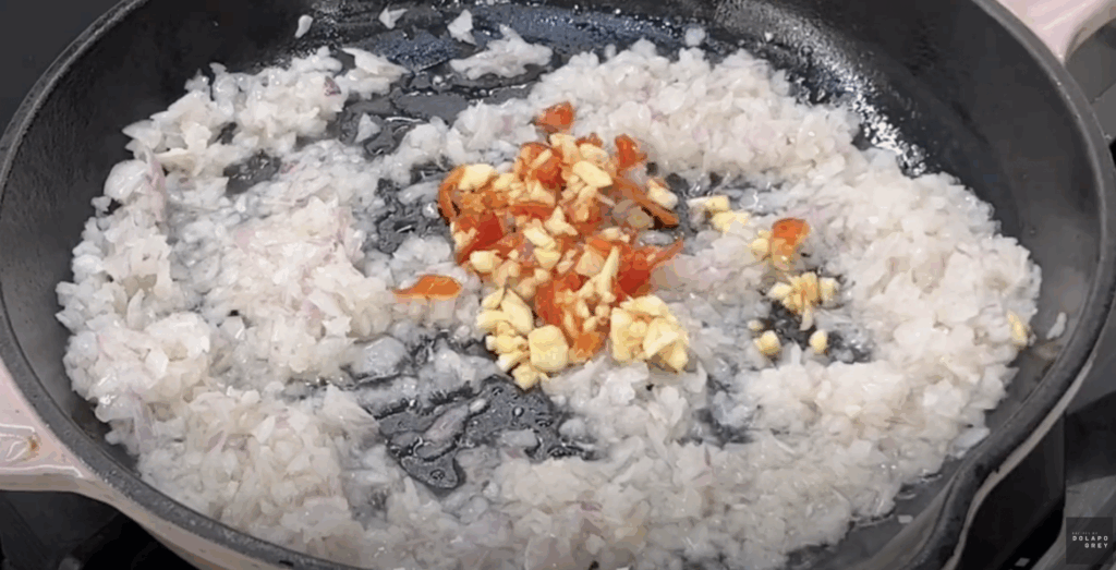 - Add the flaked fish to the pan. You can use any type of fish you prefer. Add some salt to taste, and stir-fry it for about two minutes. Then, add the spring onion, mix it in, and take the pan off the heat.Leave it until it's cool