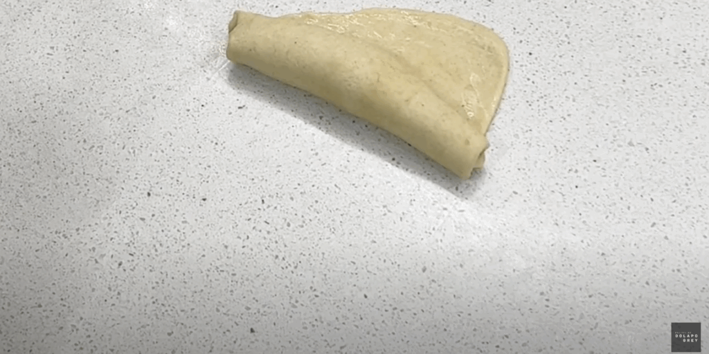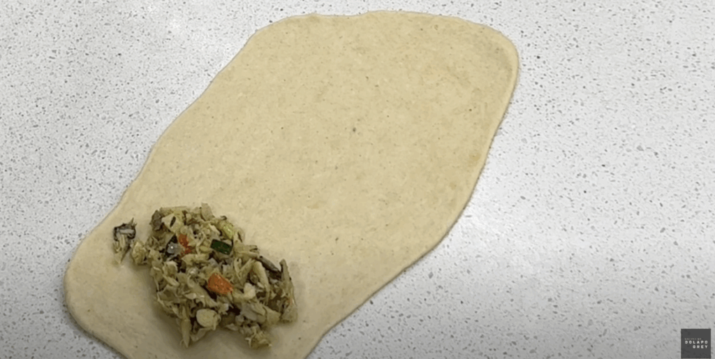 - When working with the dough, roll out one ball at a time into an oblong shape, then add about 1 tablespoon of the filling